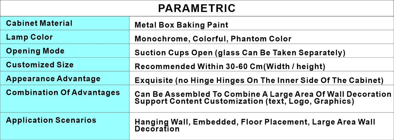 Metal Case + Mirror Tempered Glass + Mirror + LED Light Strip